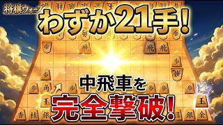 【わずか21手】中飛車が爆速で崩壊!?究極の対策で「瞬殺」してみた【将棋ウォーズ】