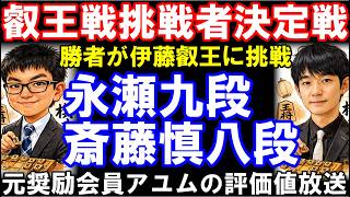 叡王戦挑戦者決定戦 永瀬拓矢九段ー斎藤慎太郎八段 元奨励会員アユムの評価値放送