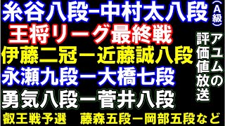 女流王座戦第三局 福間女流王座ー西山女流、王位戦予選 広瀬九段ー増田八段 朝日杯準決勝&決勝に豊島九段、谷川十七世、佐藤康九段、森内九段ら登場 終了後に服部七段―阿部九段戦も アユムの評価値放送