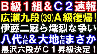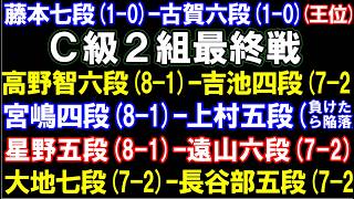 C級2組最終戦 高野智六段(8-1)ー吉池四段、宮嶋四段(8-1)ー上村五段、星野五段(8-1)ー遠山六段、王位リーグ 藤本渚七段ー古賀悠聖六段