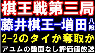 棋王戦五番勝負第三局 藤井聡太棋王ー増田康宏八段 アユムの盤面なし評価値放送